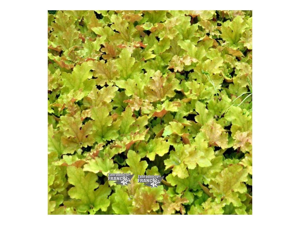Dlužicha s jemně zvlněným listem žlutavě zelené až oranžové barvy podle oslunění.
