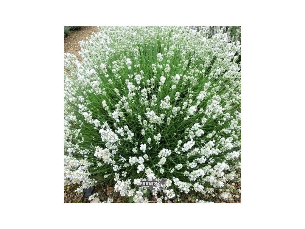Novější odrůda bílé levandule s kompaktnějším růstem a sivě zeleným olistěním. Květy čistě bílé s krémovým kalichem, kvete od června do konce července.