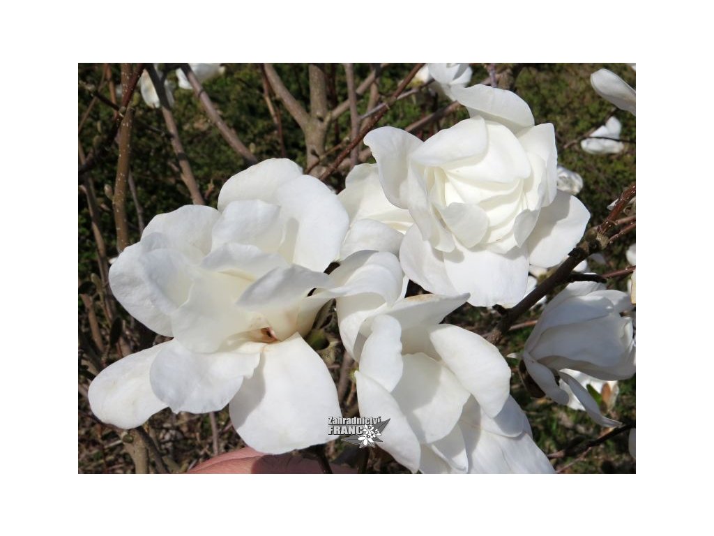Vzhled: Středně velký, široce větvený strom. Listy matně zelené, obvejčité až eliptické, střídavé a opadavé, délka 12-16 cm. Květy jsou čistě bílé, složené z 14-16 květních plátků. Květ má miskovitý tvar a dosahuje v průměru 10 - 15 cm. Kvete bohatě počátkem dubna, před olistěním. Roční přírůstek je v mládí 40 až 50 cm, výška kolem 20. roku po výsadbě 4 až 6 m, v 50 letech dosahuje výšky 6 - 9 m.
