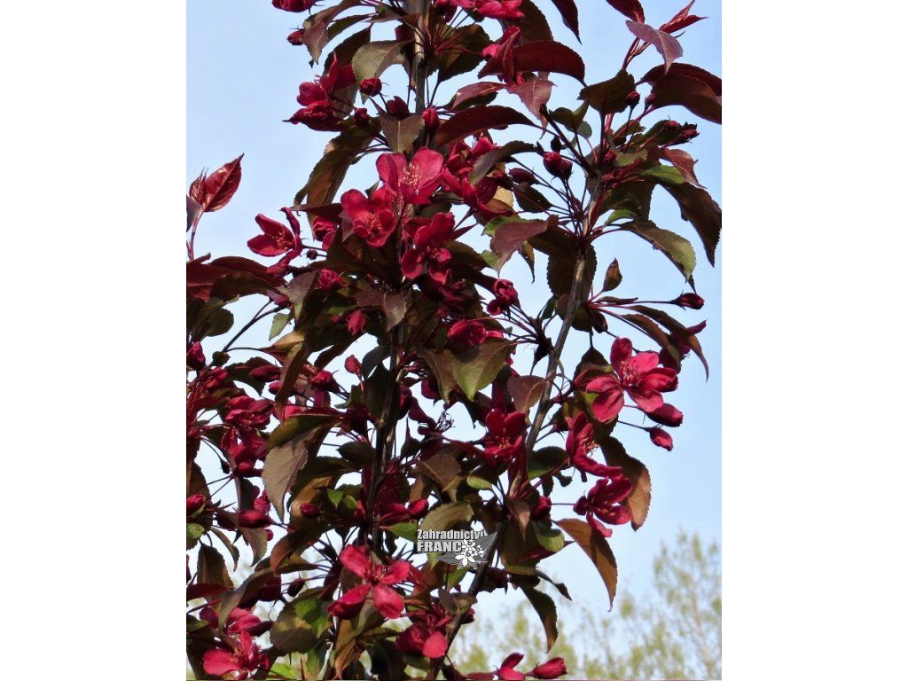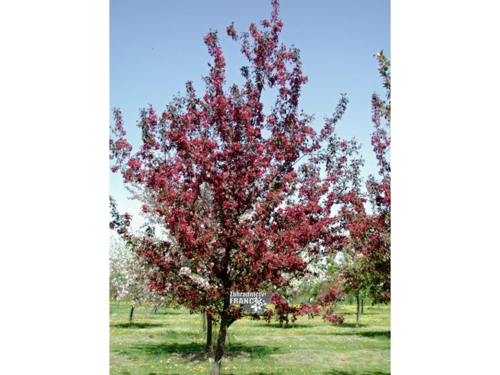 Vzhled: Okrasná jabloň s hustou kulovitou korunou. List je středně velký, při rašení vínově červený, později fialový. Poupě je temně purpurové, květ sytě červený střední až velký.. Plod drobný 1 až 1,5 cm v průměru, vybarvuje během září do tmavě purpurové. Strom dosahuje v 10. roce výšky 3,5 až 4 m.