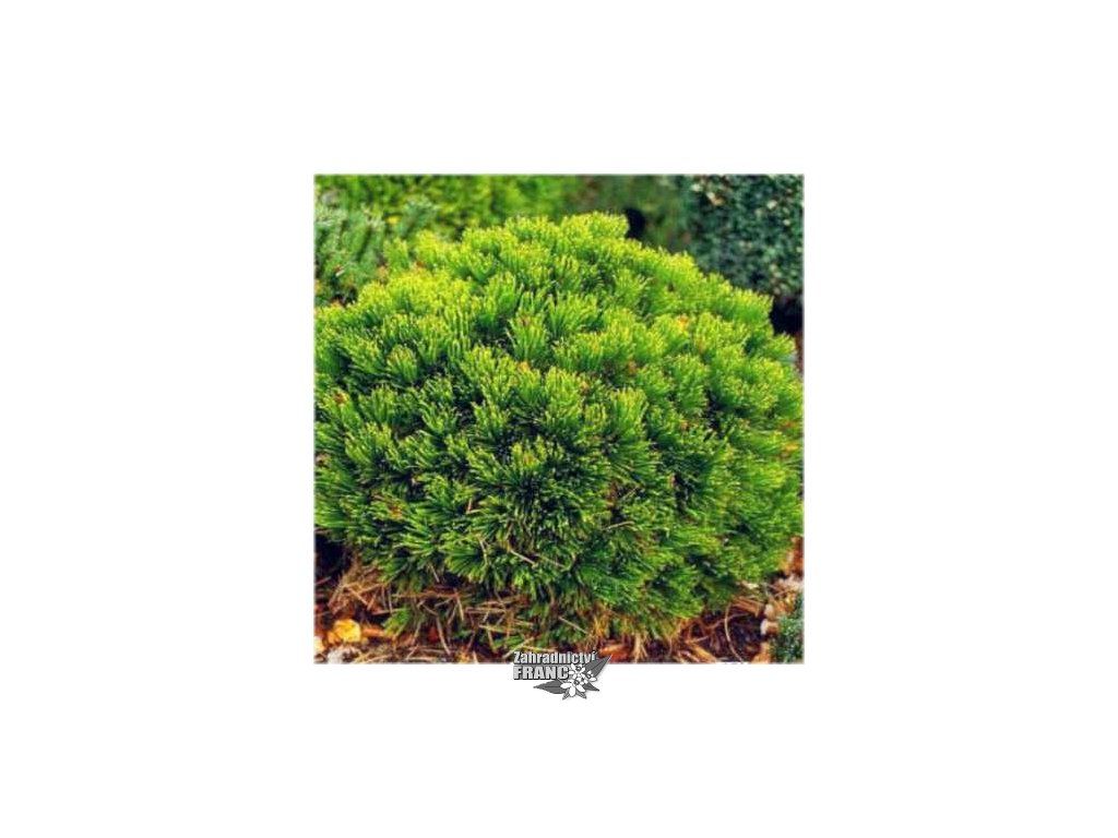 Vzhled: Výrazně zakrslá až miniaturní odrůda. Vytváří jasně zelený, hustě větvený, kulovitý polštář. Jehlice jsou ve svazcích po dvou, leskle, světle zelené, dlouhé 3 až 5 cm. Neplodná. Rostlina dosahuje ve 20. roku výšky a šířky 30-40 cm, v 50 letech výšky 60-80 cm. a šířky 90-100 cm.