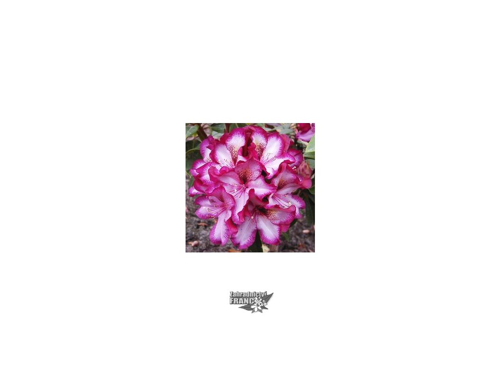 Vzhled: Mírně rozkladitý, stálezelený keř. Listy široce eliptické, kožovité, matně sytě zelené. Květy středně velké, bělavé od středu s purpurově fialovým mírně zvlněným lemem, jednoduché, 4,5-5,5 cm v průměru. Kvete bohatě ve druhé polovině května až do začátku června. Keř přirůstá ročně 20 až 25 cm, výška kolem 10. roku po výsadbě 1,3 až 1,5 m. Mrazuvzdornost - 22 °C.
