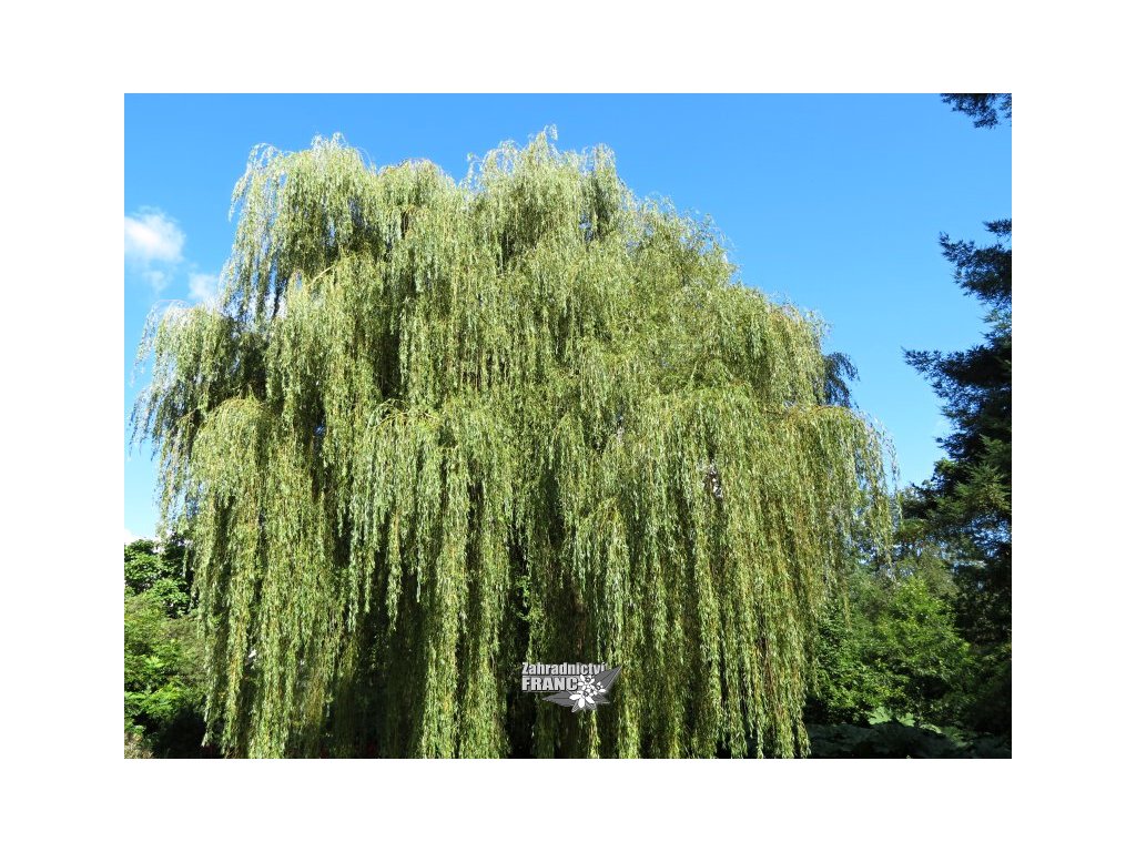 Známá "smuteční" vrba s mohutnou převislou korunou, větve často splývají až k zemi. Velice působivá solitéra, která vyniká zvláště při kombinaci s vodní hladinou.