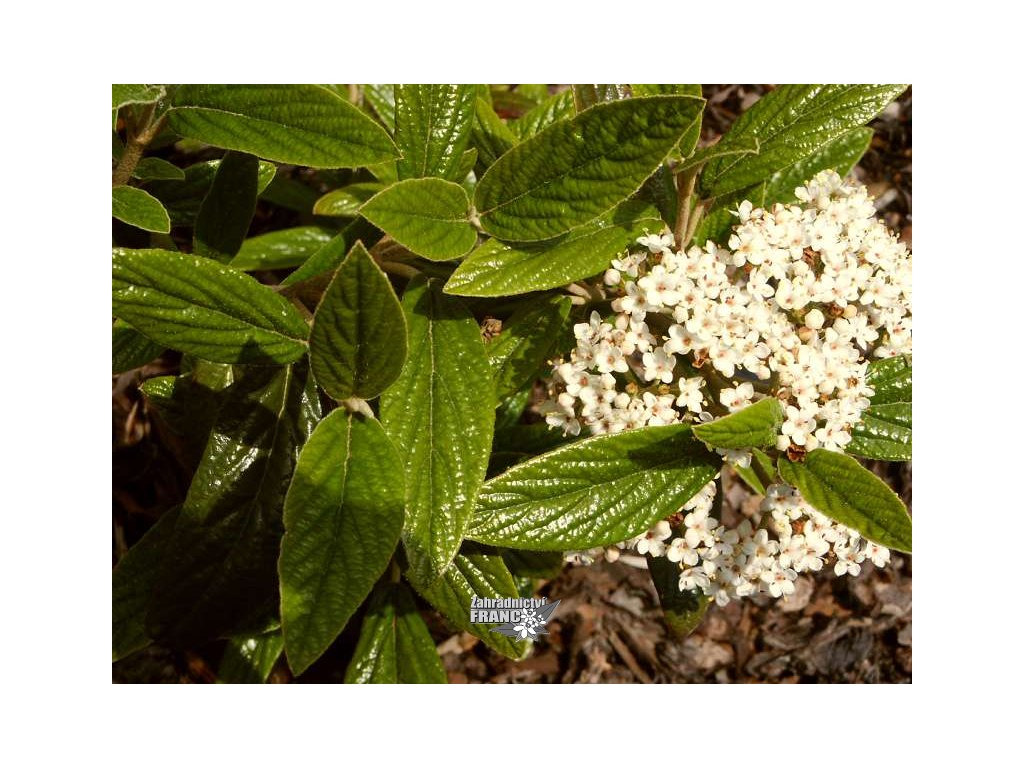 Původ: Kříženec druhů V. rhytidophyllum x V. utile, který byl vyšlechtěn v Průhonicích u Prahy kolem roku 1955 (Vik).